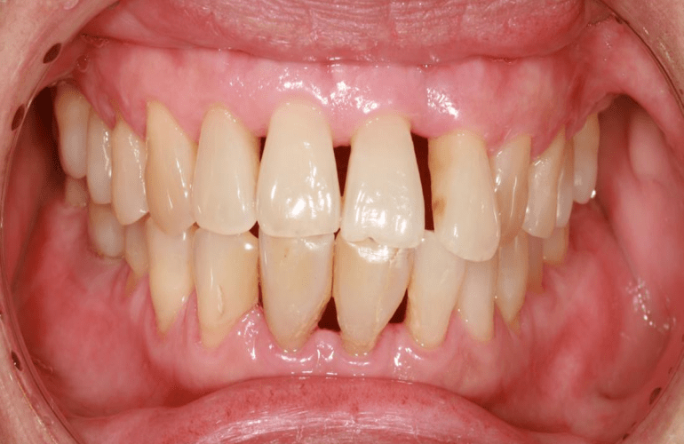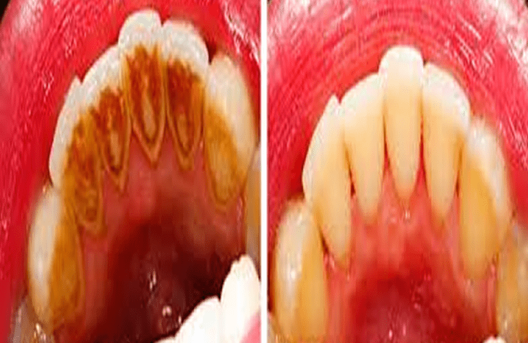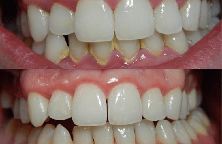 Periodontitis involves oral hygiene and professional teeth cleaning.